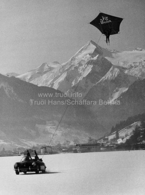 Porsche 356 mit der Kraft einen Drachenflieger zu ziehen.