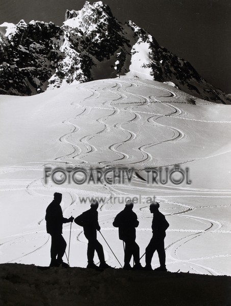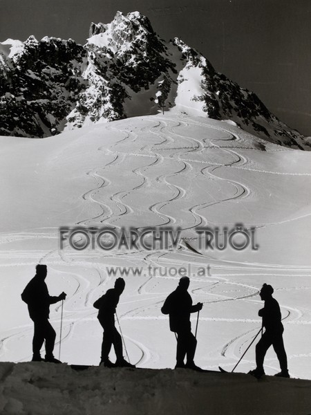 Aufnahmen der Skilehrer Rote Teufel aus Kitzbühel .