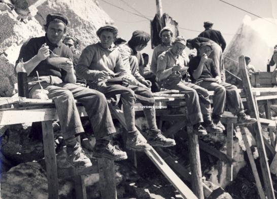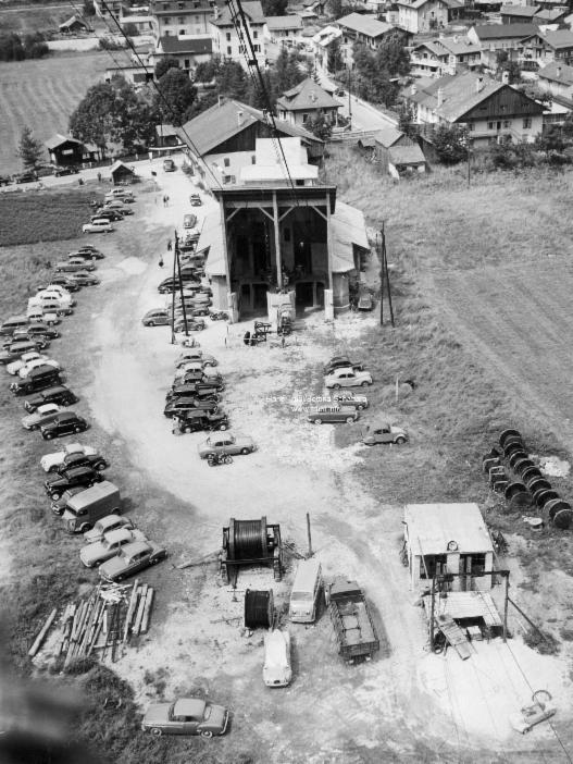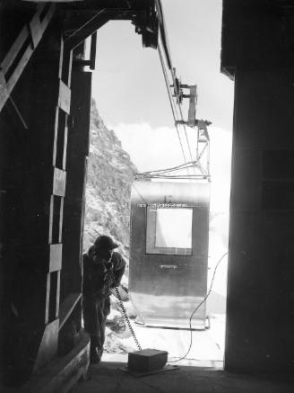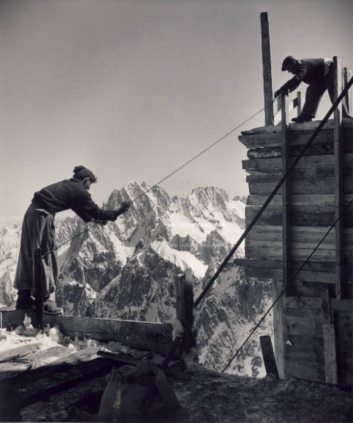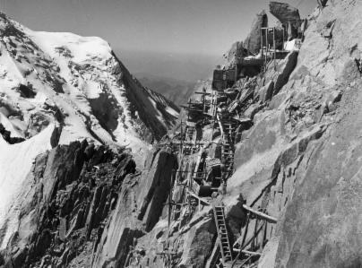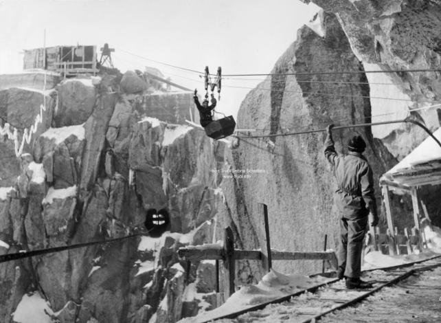 Bau der Seilbahn am Gipfel